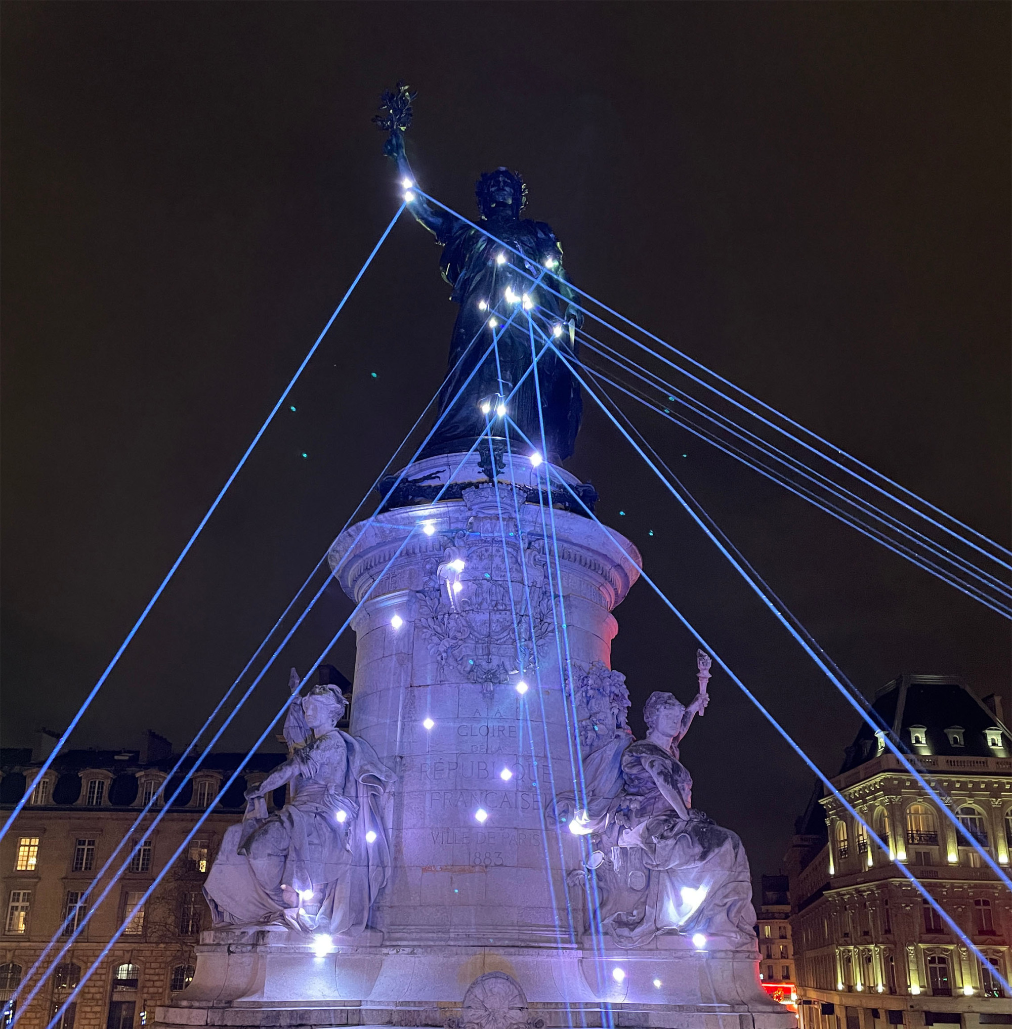 Tous à la République, projection interactive de l'artiste Filipe Vilas-Boas, produite par le studio The Fairy, pour célébrer le non-anniversaire de la loi handicap, sur la place de la République, à Paris, en février 2025.