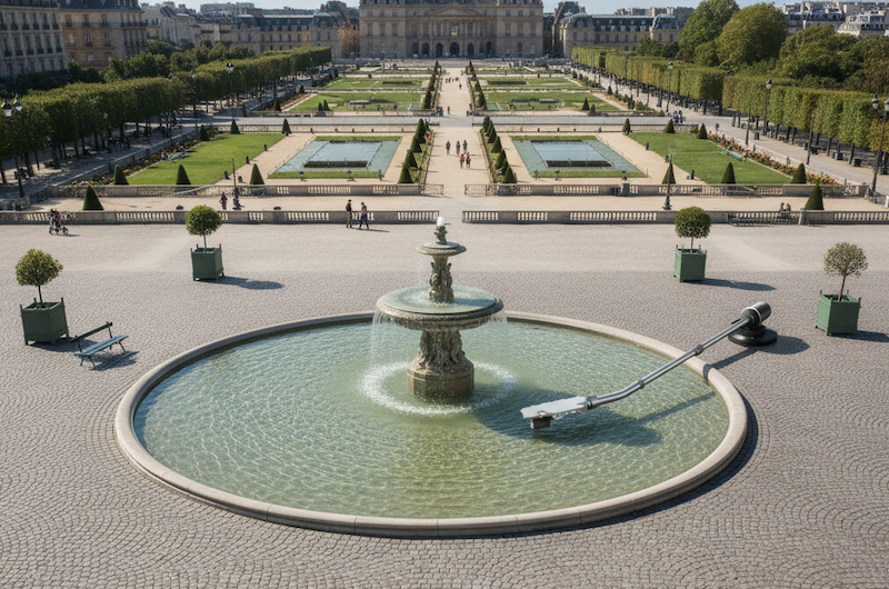 "À la lisière de l’eau, un bras de lecture se déploie comme un instrument délicat, lisant la surface ondulante tel un diamant parcourant le sillon d’un disque vinyle. Le flux devient partition, les rides deviennent rythme."